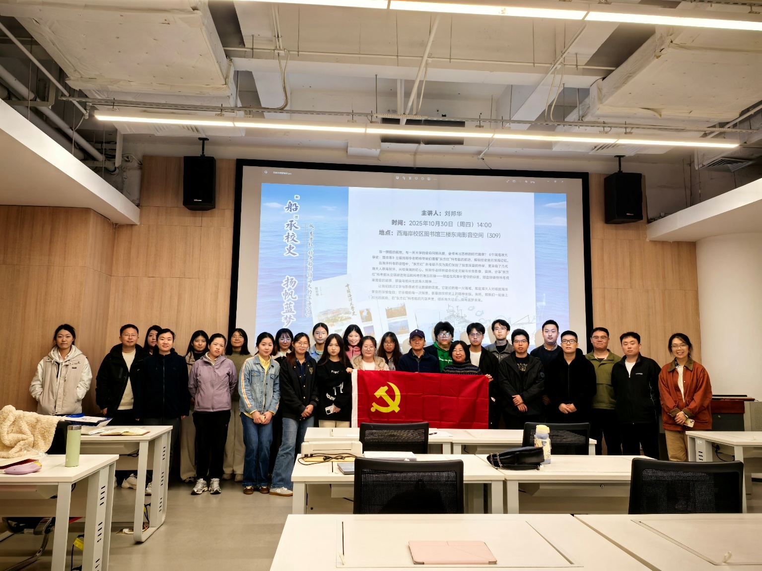 10月30日下午,西海岸馆读者服务党支部邀请《中国海洋大学史:图志卷》主编刘邦华老师为师生带来了一场精彩讲座,讲座由西海岸馆读者服务党支部书记张莉红主持。刘老师以“行远东方红——校史上的科考船故事”为题,带领师生循着“东方红”科考船的航迹,解码校史里的深海记忆,回溯海大人耕海探洋的初心与使命。
