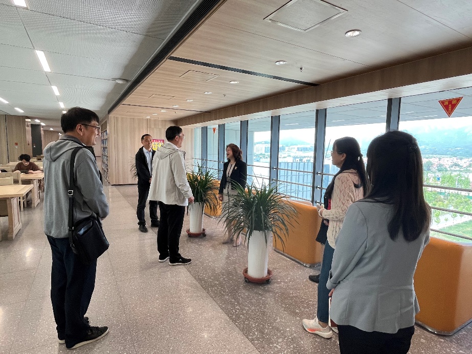 西海岸馆解登峰、李靓陪同高晓波馆长一行先后参观了我校西海岸馆的图书阅览区、数字学习区、研讨间、创客空间、影音空间、创想之舟等特色功能空间,并向高晓波馆长详细介绍了西海岸馆的空间建设与读者服务情况。