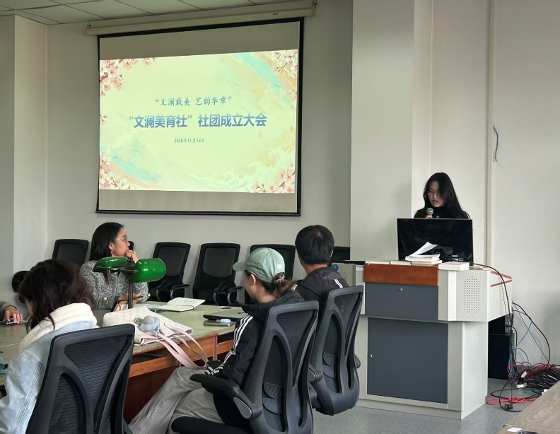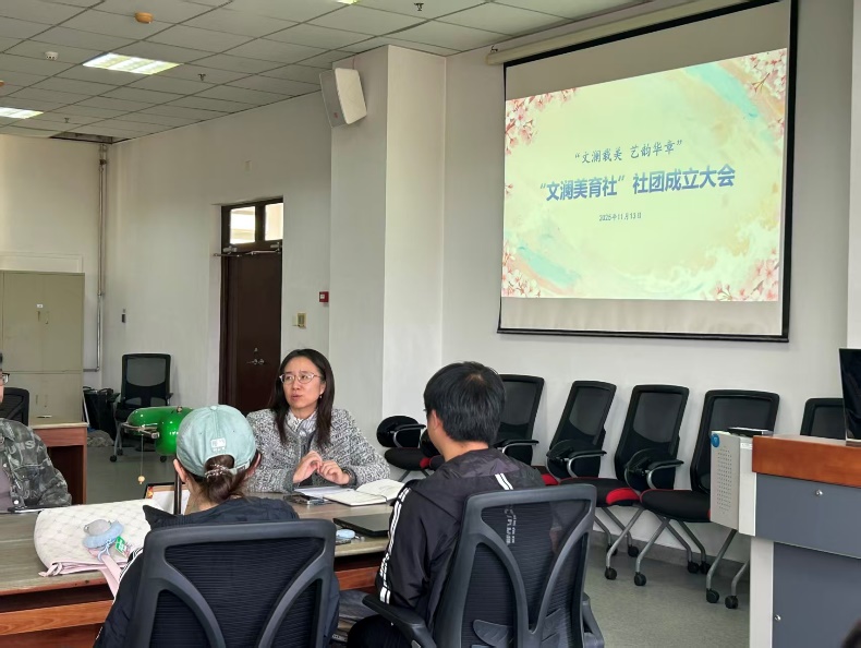 文澜美育社社长陈世新主持会议。思政老师昝栋在会上发言,她肯定了美育社前期的工作成果,鼓励社团成员以艺术为桥,探索美、传递美,通过举办各类主题的美育学习与实践活动,丰富校园文化建设,践行“以美育人、以艺润心”办社宗旨。