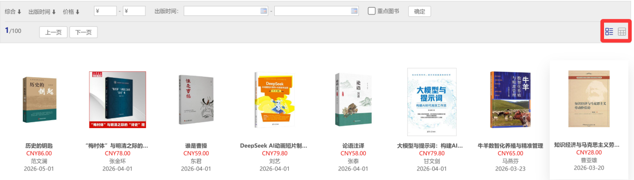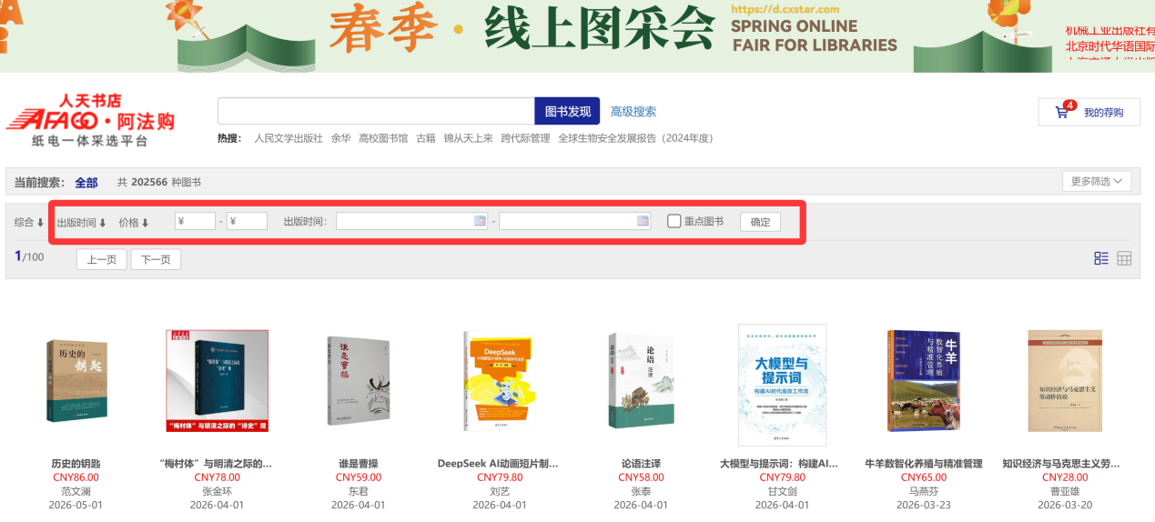 1.1 可按图书的出版时间、价格排序,也可按价格区间、出版时间段进行筛选。