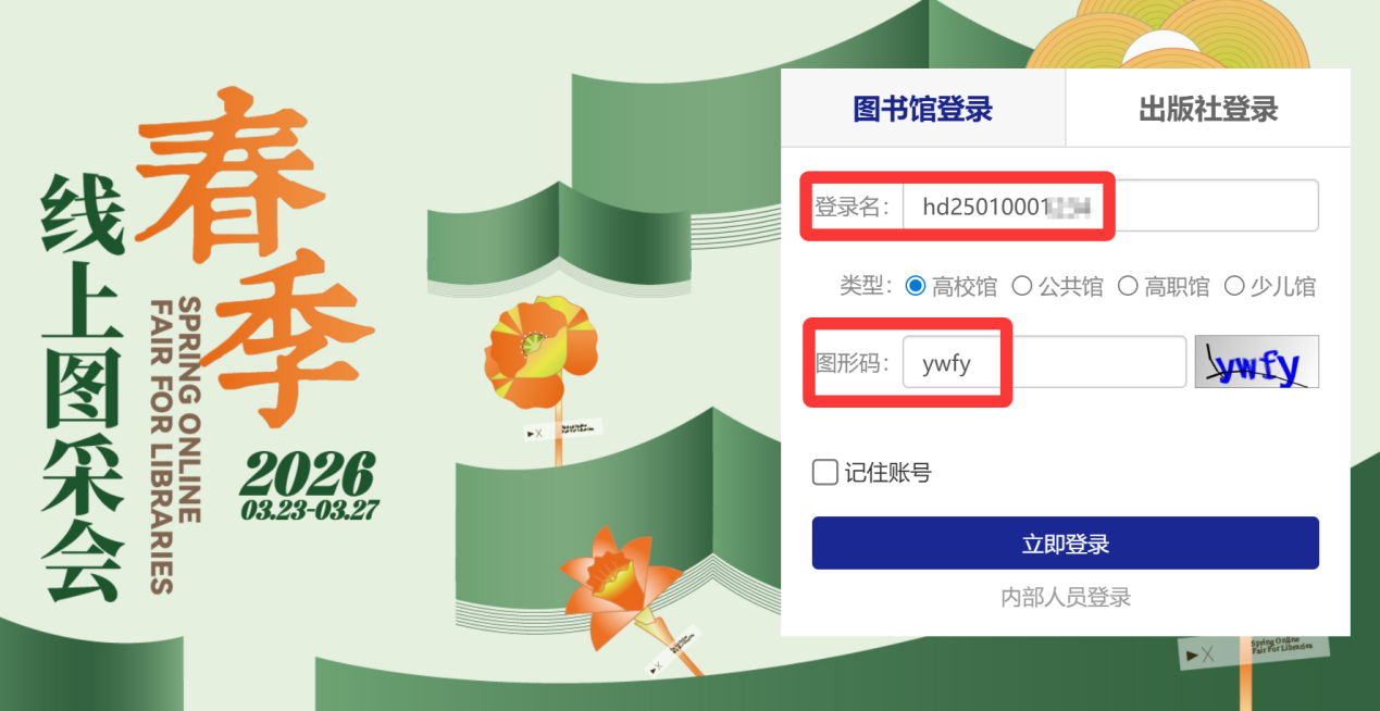 打开网址https://d.cxstar.com,点击右上角【登录】→选择【图书馆登录】→输入登录名【hd学号/hd工号】→选择【高校馆】→输入【图形码】→点【立即登录】。