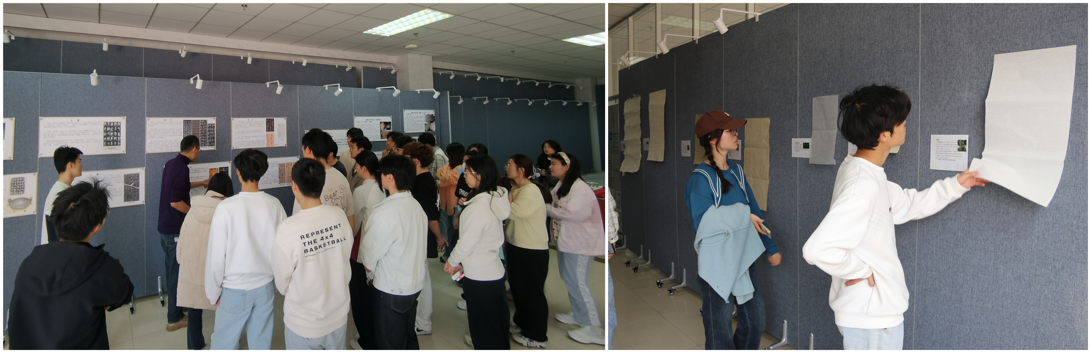 活动伊始,文学与新闻传播学院孟岗老师以中国文字发展脉络、造纸技术历史传承为经纬,系统梳理了汉字演变、纸张革新与图书形态的发展历程,并向大家推荐多部相关经典书籍。活动现场,同学们触摸着竹纸、麻纸、宣纸等不同工艺材质的纸张,指尖拂过温润与粗朴,千年文明的质感在掌心苏醒,华夏文脉的脉络变得可触可感。