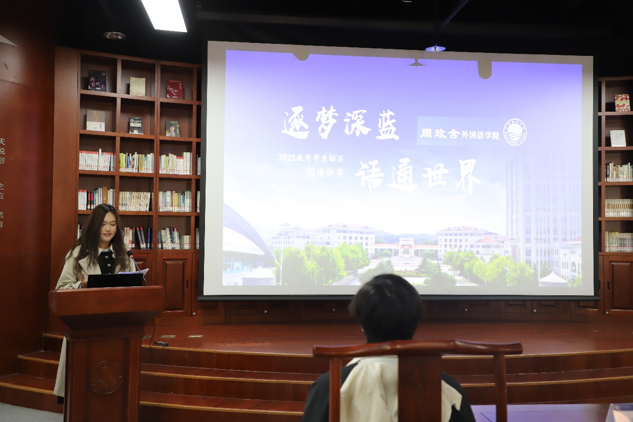 外国语学院周玫含以“逐梦深蓝 语通世界”为主题,立足专业所长,围绕“厚植家国情怀,锤炼专业本领”,讲述自己在学习、科研与社会实践中的探索与收获。她分享《平凡的世界》中普通人在苦难中坚守、在奋斗中成长的动人情节,传递出脚踏实地、逐梦前行的正能量。