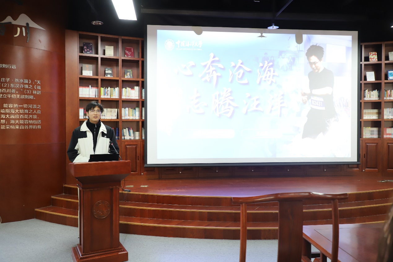 全国首个全民阅读活动周之际,恰逢第31个世界读书日。4月23日下午,为深入贯彻落实《全民阅读促进条例》精神、深植校园阅读之风,中国海洋大学图书馆联合学生工作处、海洋与大气学院、外国语学院,共同举办“书香海大 标兵领航——校优秀学生标兵阅读分享”活动。 图书馆馆长谷强、海洋与大气学院团委陈霖峰、外国语学院团委张学鑫、图书馆资源建设部相关老师、校优秀学生标兵王奔腾、周玫含及两学院80余名学生代表出席活动。
